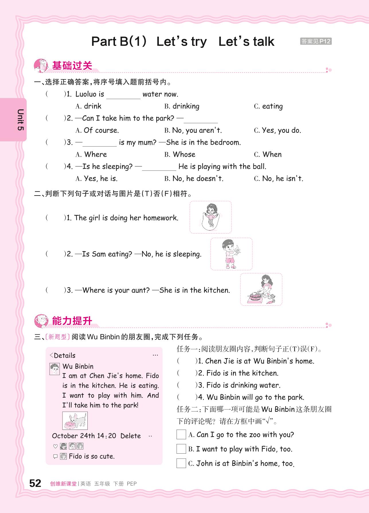2024春下册五年级英语人教PEP版 Unit 5—Part B(1) Let's try Let's talk