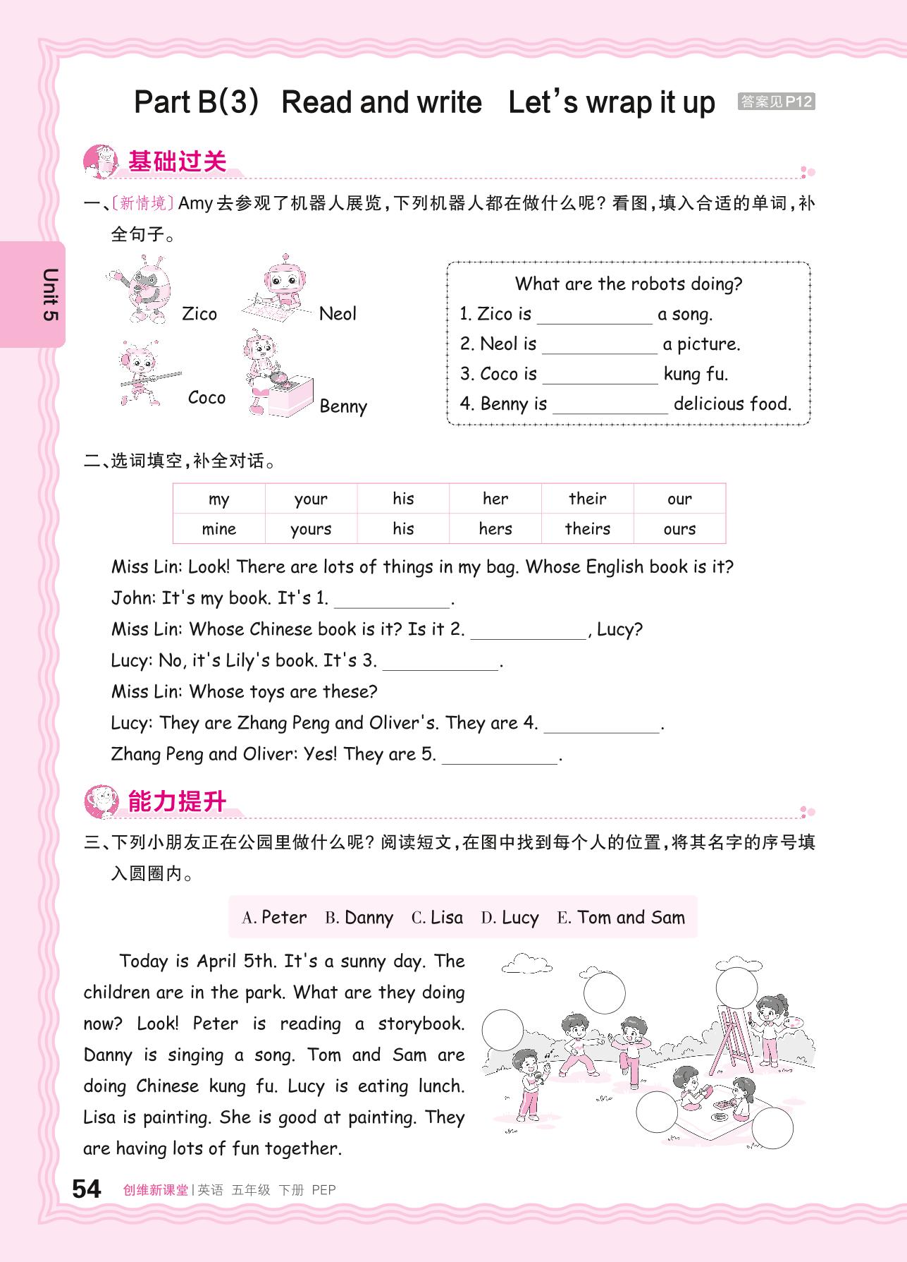 2024春下册五年级英语人教PEP版 Unit 5—Part B(3) Read and write Let's wrap it up