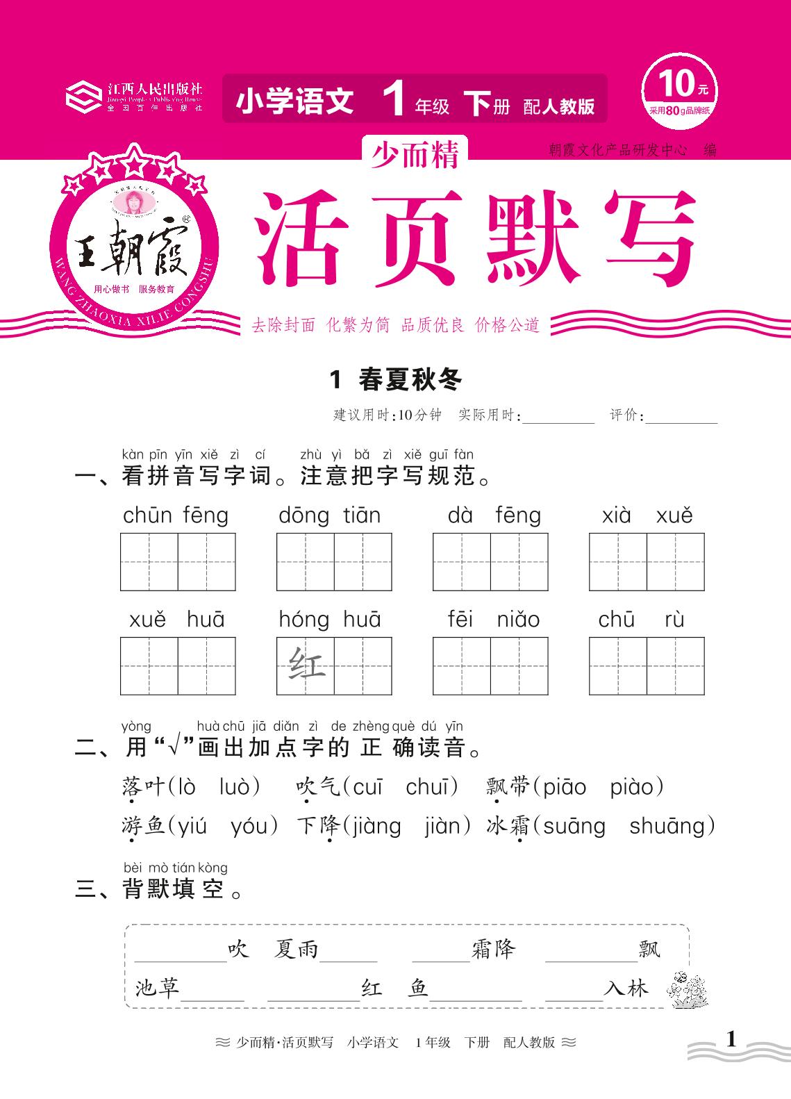 2024春下册一年级语文人教版 第一单元——1. 春夏秋冬