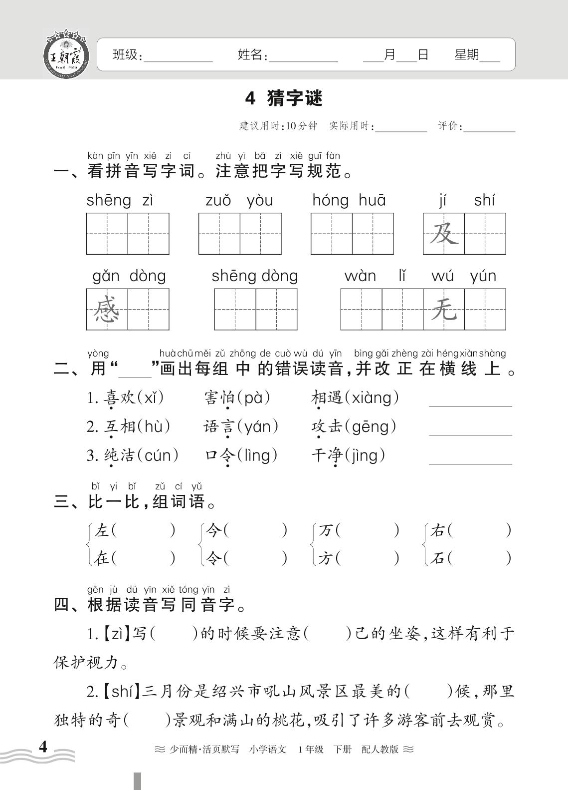2024春下册一年级语文人教版 第一单元——4. 猜字谜