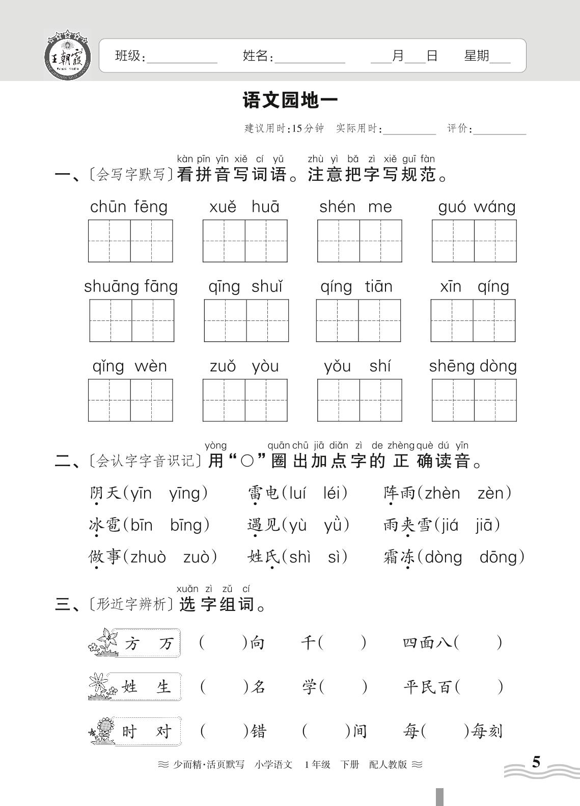 2024春下册一年级语文人教版 第一单元——语文园地一