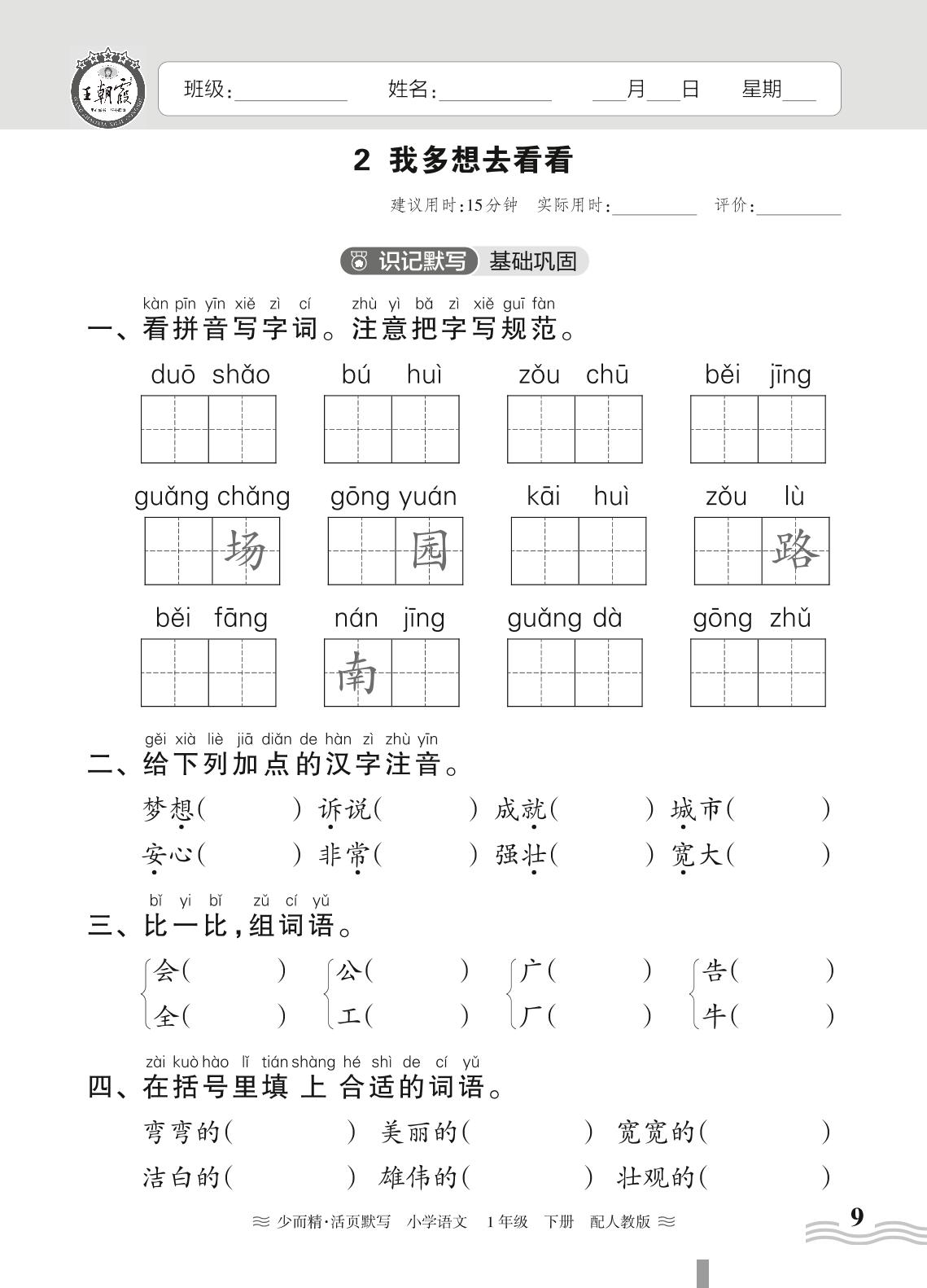 2024春下册一年级语文人教版 第二单元——2. 我多想去看看
