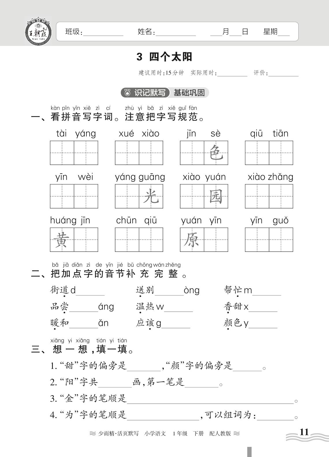 2024春下册一年级语文人教版 第二单元——3. 四个太阳