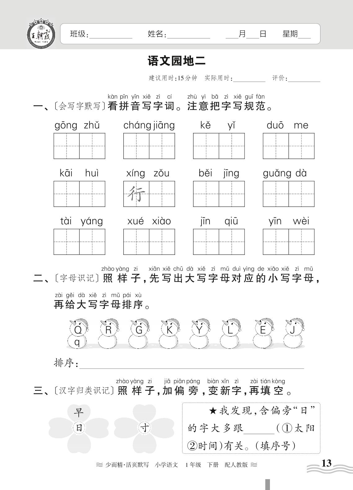 2024春下册一年级语文人教版 第二单元——语文园地二
