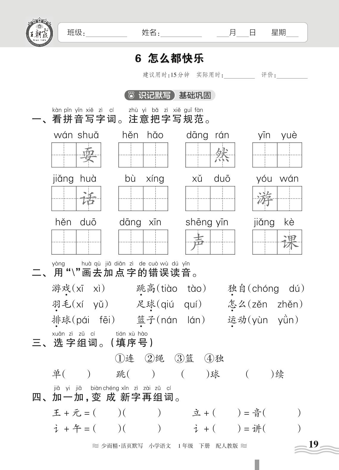 2024春下册一年级语文人教版 第三单元——6. 怎么都快乐