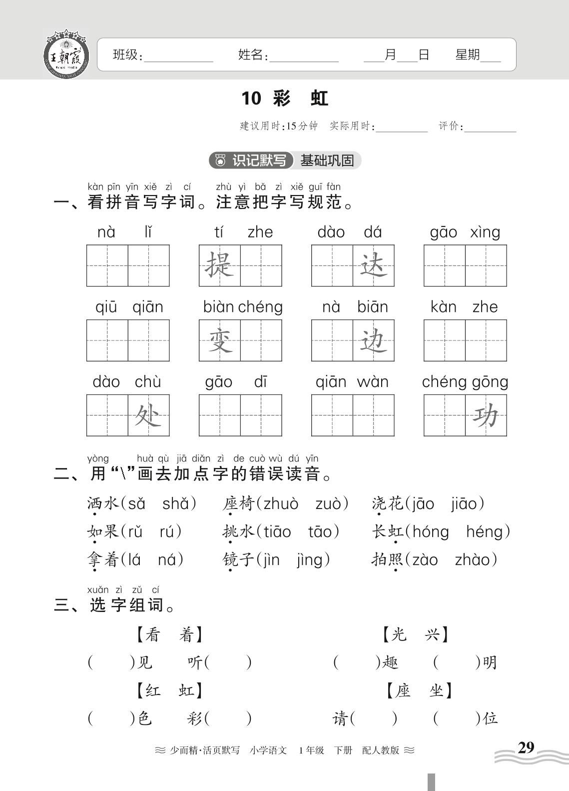 2024春下册一年级语文人教版 第四单元——10. 彩虹