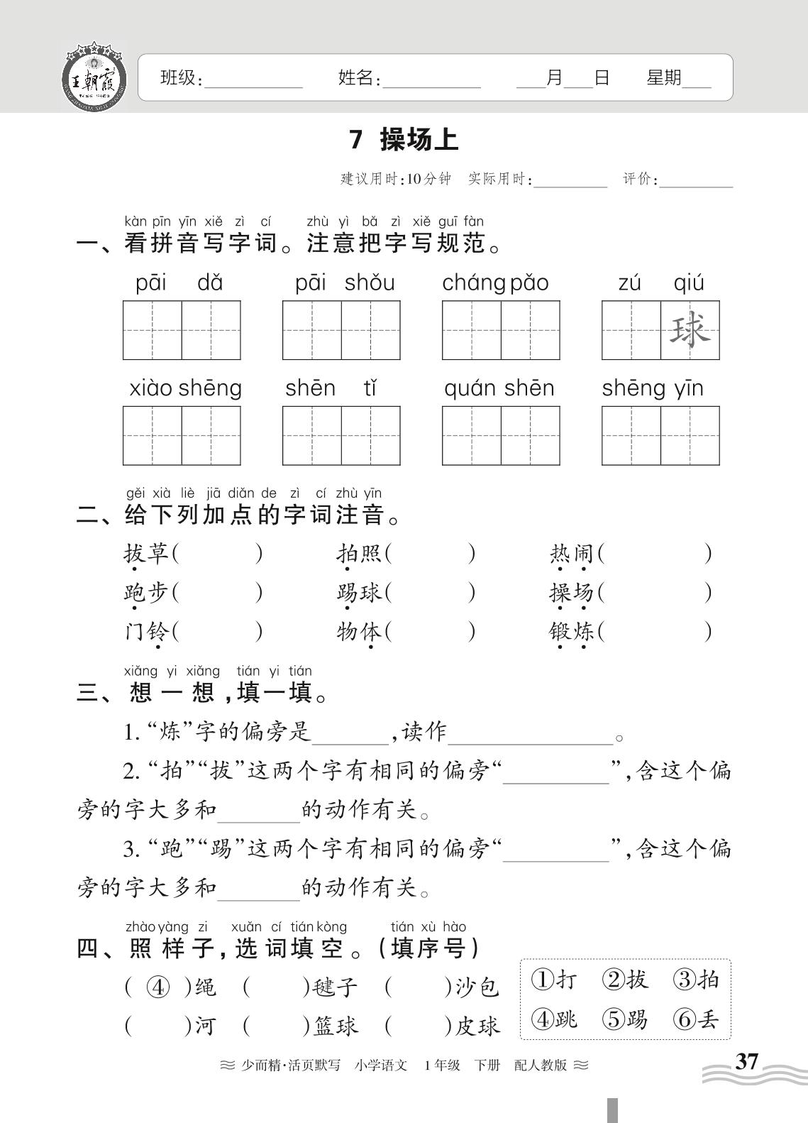2024春下册一年级语文人教版 第五单元——7. 操场上