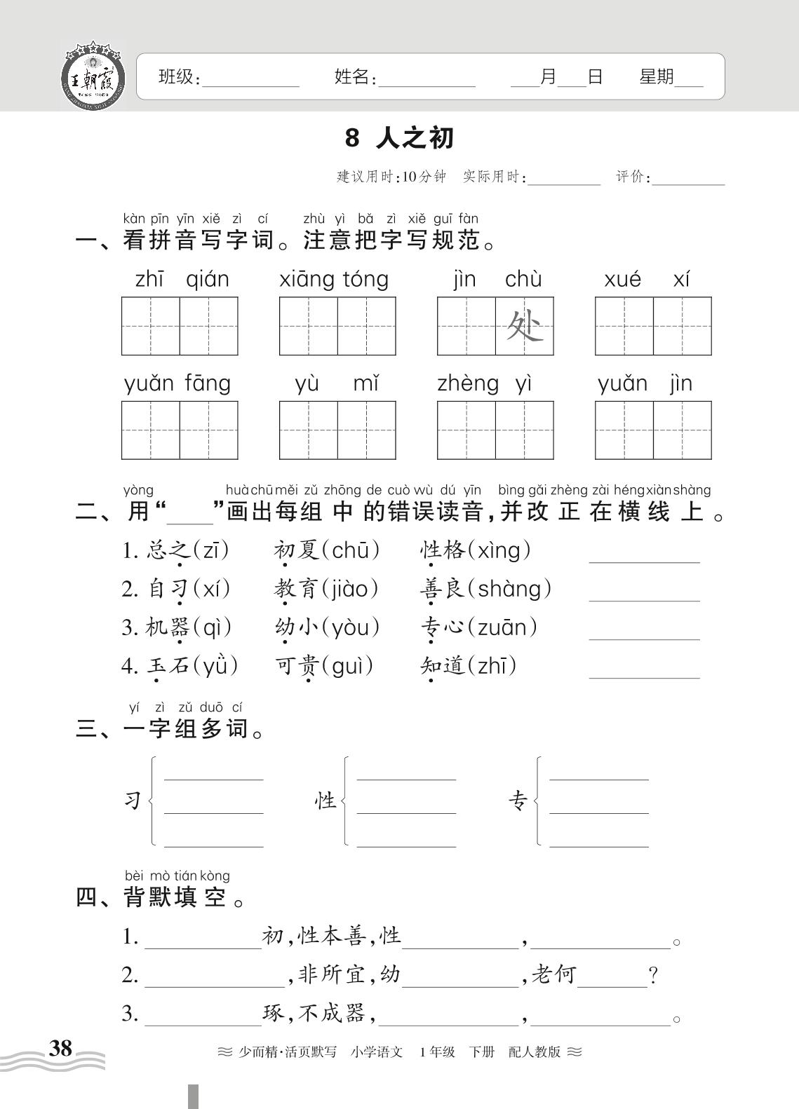 2024春下册一年级语文人教版 第五单元——8. 人之初