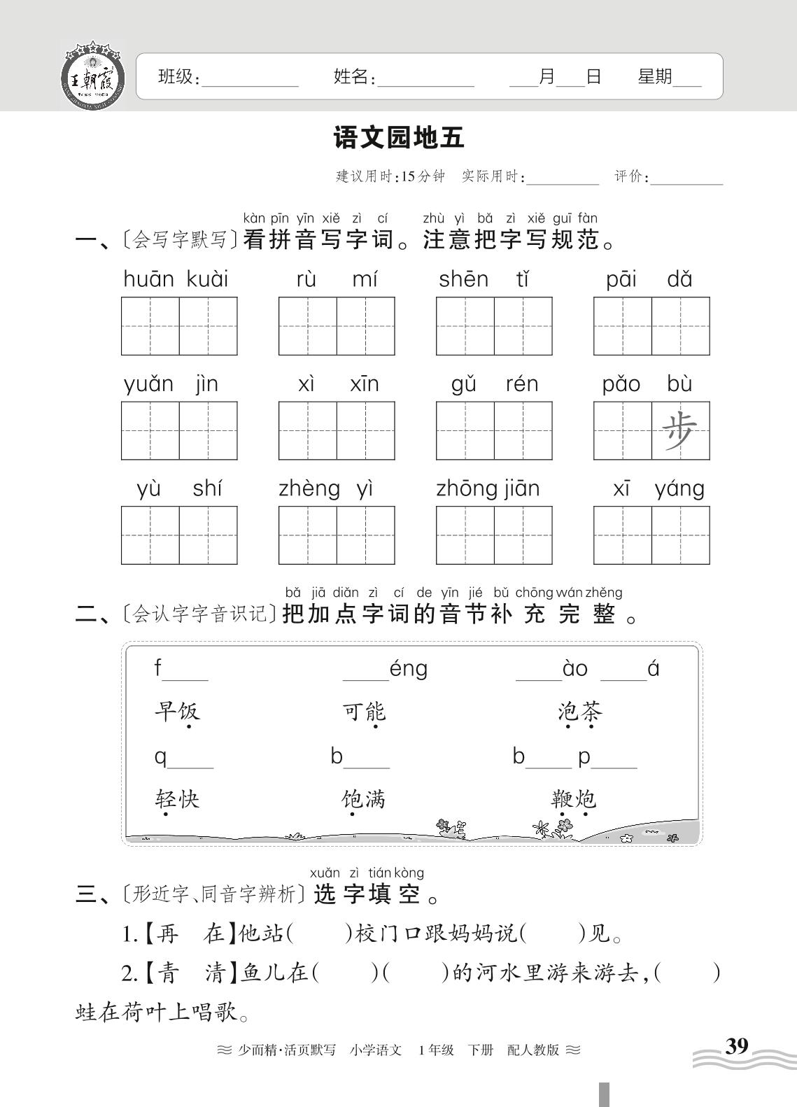 2024春下册一年级语文人教版 第五单元——语文园地五