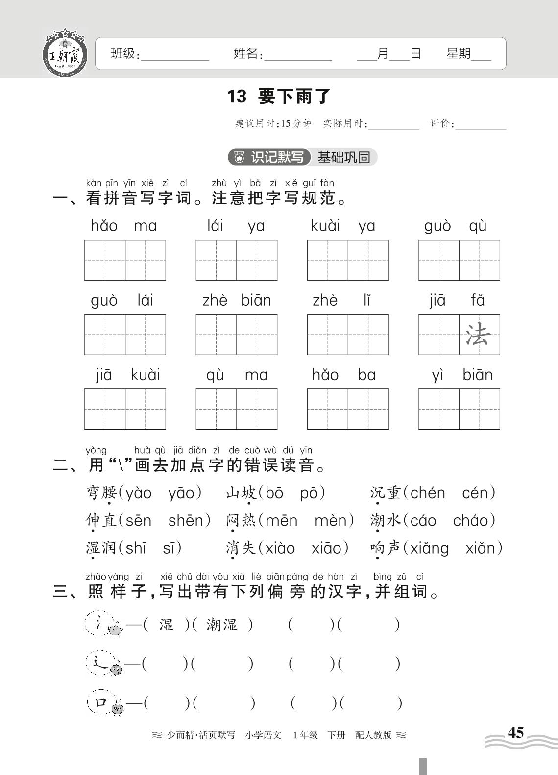 2024春下册一年级语文人教版 第六单元——13. 要下雨了
