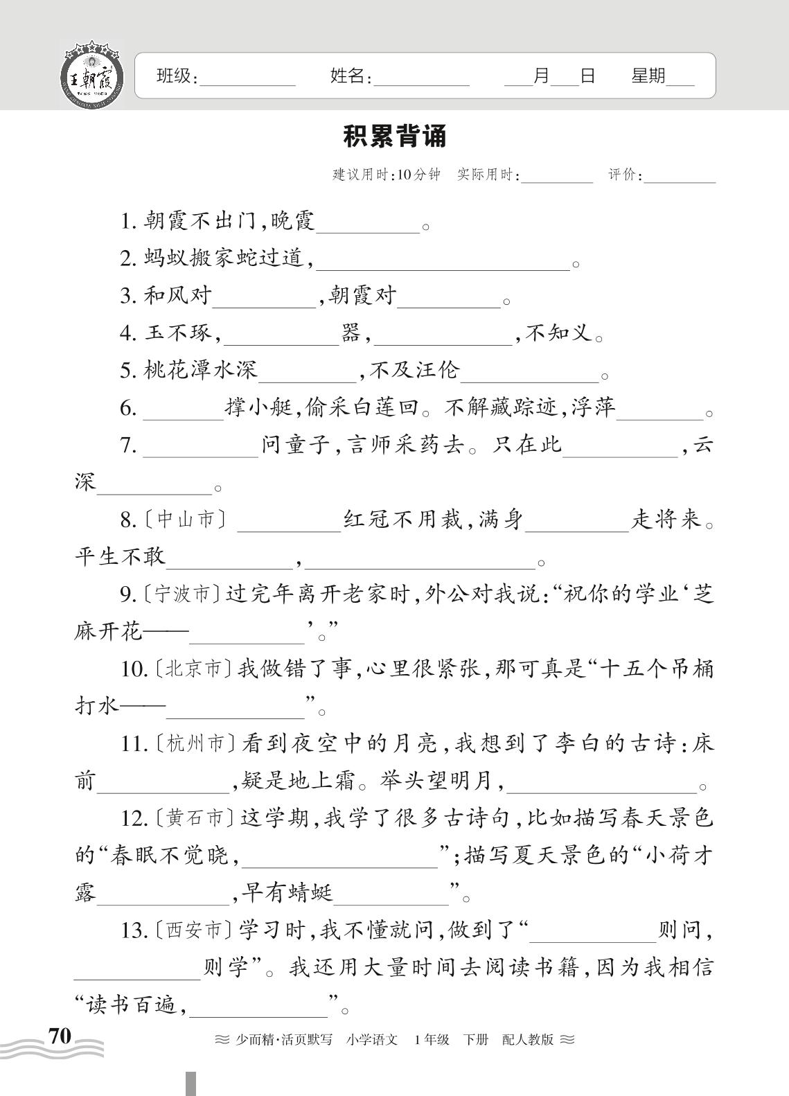 2024春下册一年级语文人教版 期末真题归类复习——积累背诵