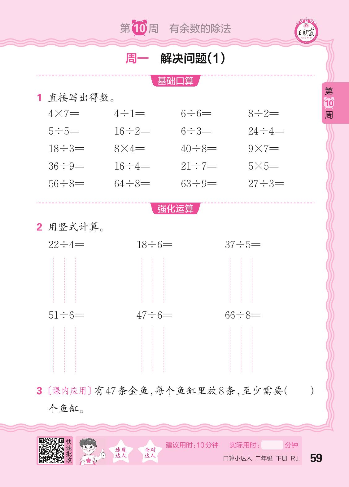 2024春下册二年级数学人教版 口算计算专练 第10周