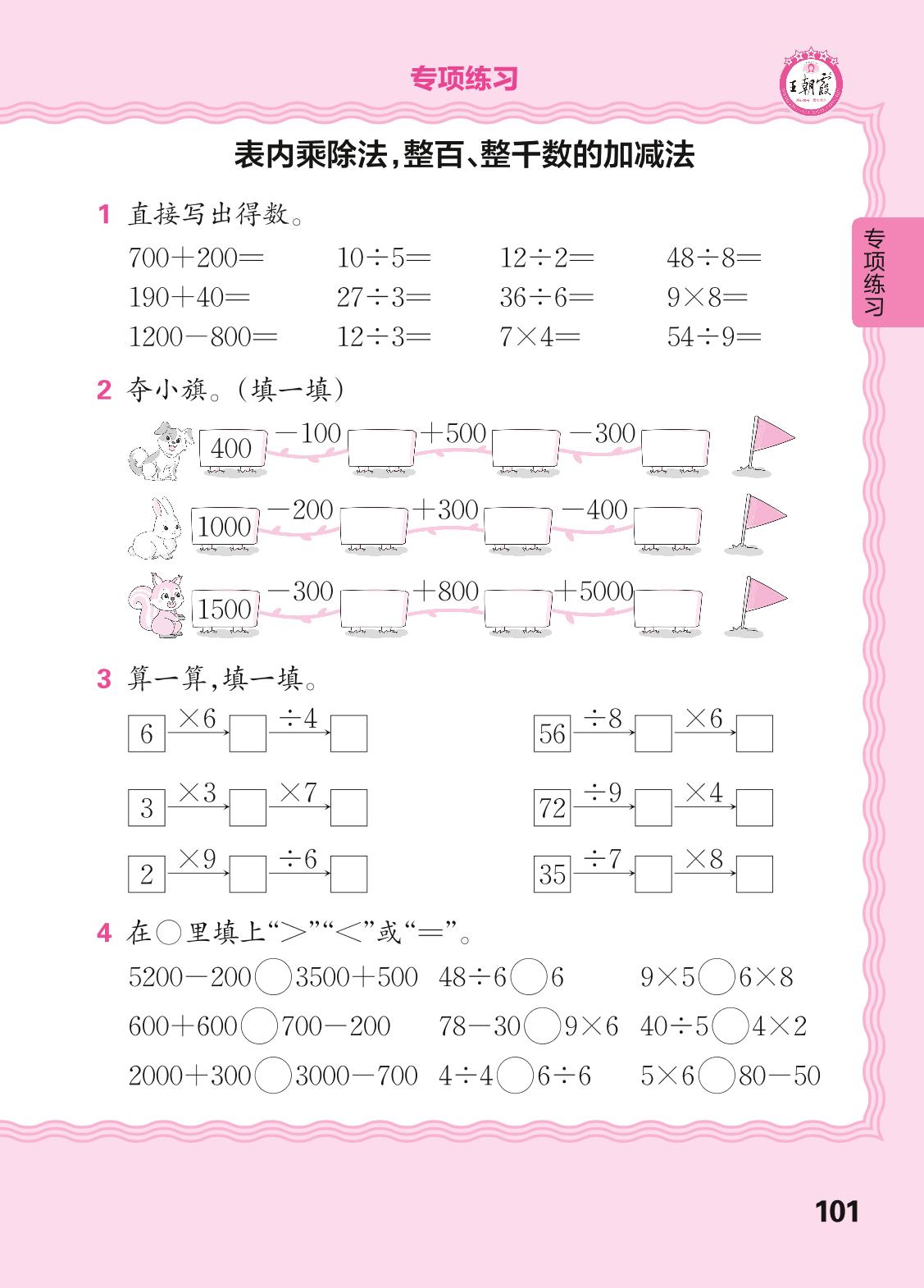 2024春下册二年级数学人教版 口算计算专练 专项练习