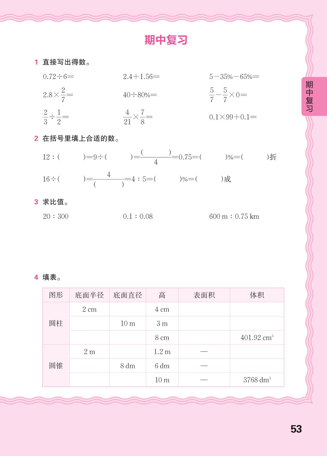 2024春下册六年级数学人教版 期中复习(计算专练)