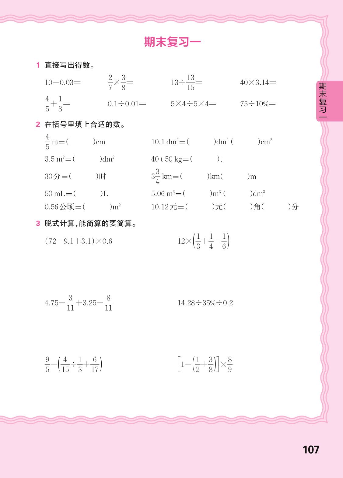 2024春下册六年级数学人教版 期末复习一(计算专练)