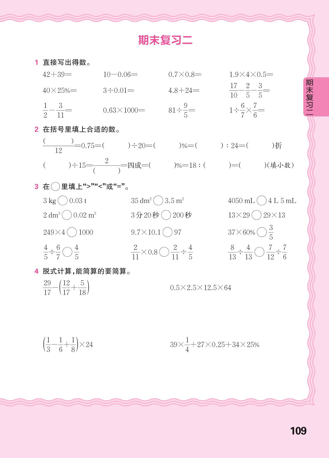 2024春下册六年级数学人教版 期末复习二(计算专练)