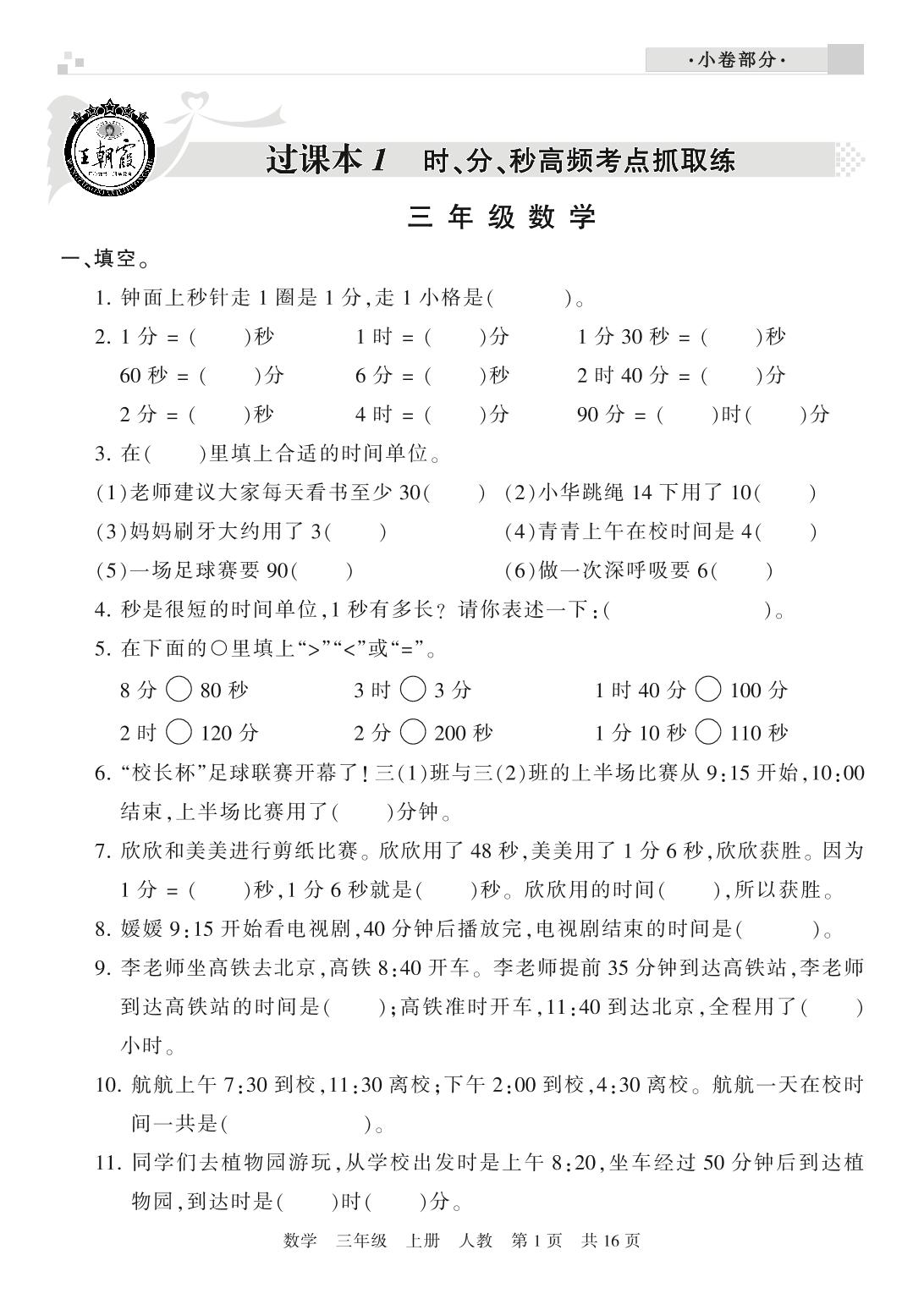 王朝霞期末过课本三年级上册数学(人教版)_R21080495435【0】