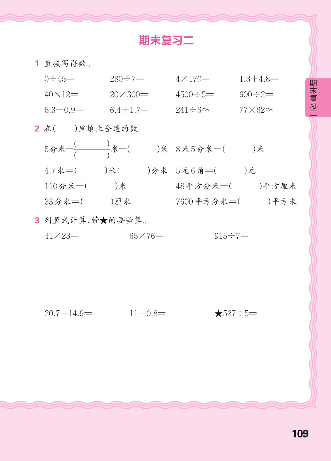 2024春下册三年级数学人教版 期末复习二(计算专练)
