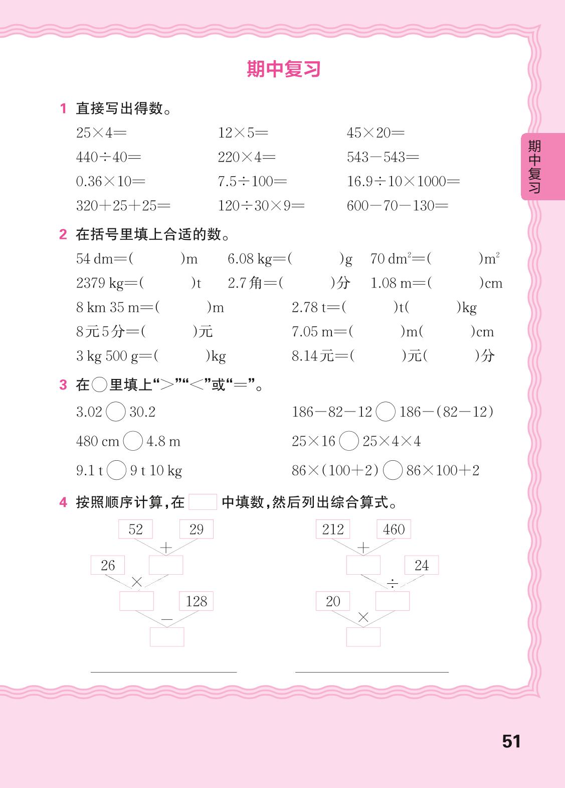 2024春下册四年级数学人教版 期中复习(计算专练)