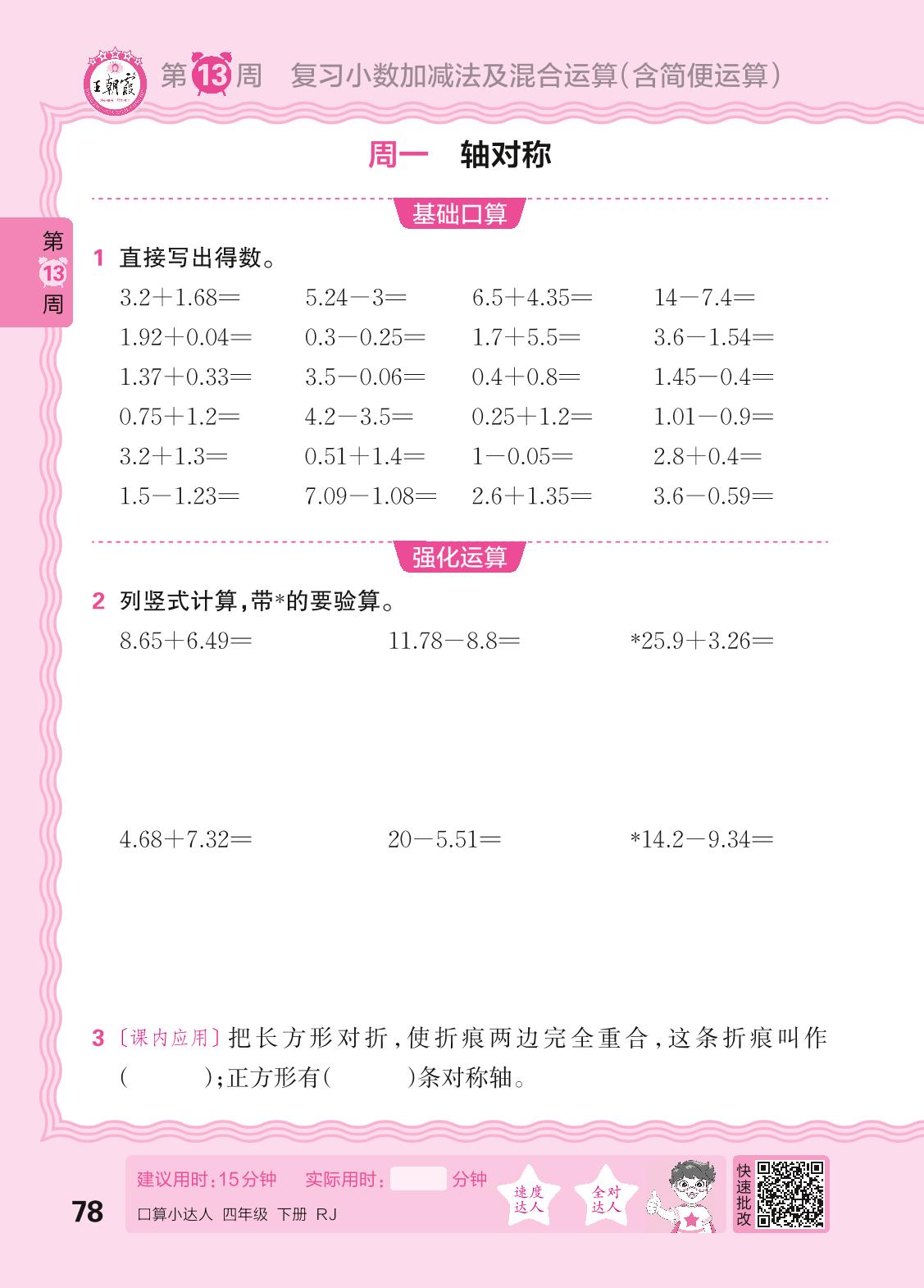 2024春下册四年级数学人教版 口算计算专练 第13周