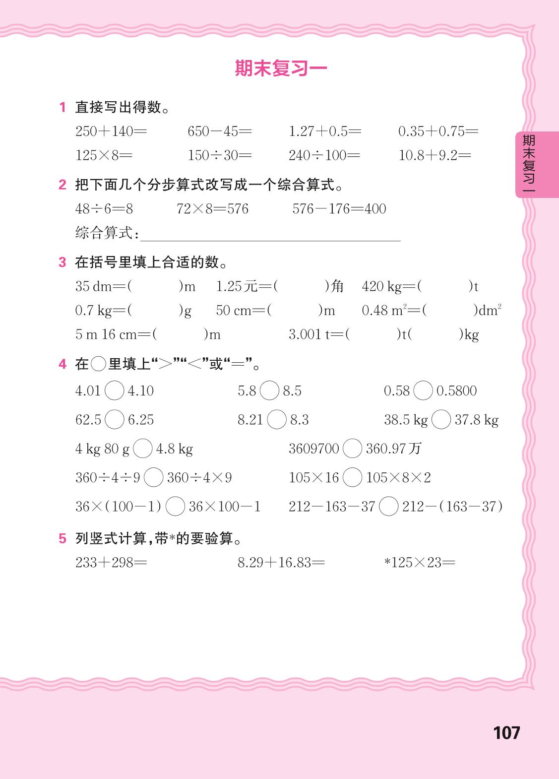 2024春下册四年级数学人教版 期末复习一(计算专练)