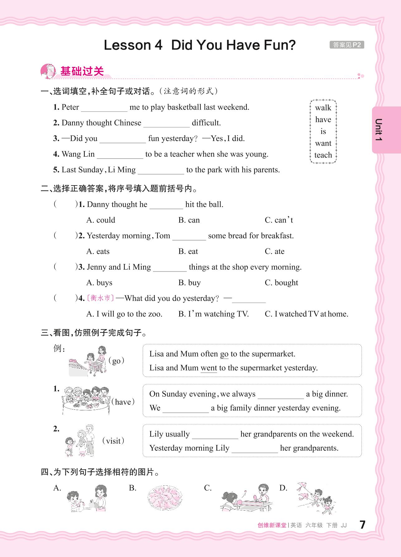 2024春下册六年级英语冀教版 Unit 1—Lesson 4 Did You Have Fun?