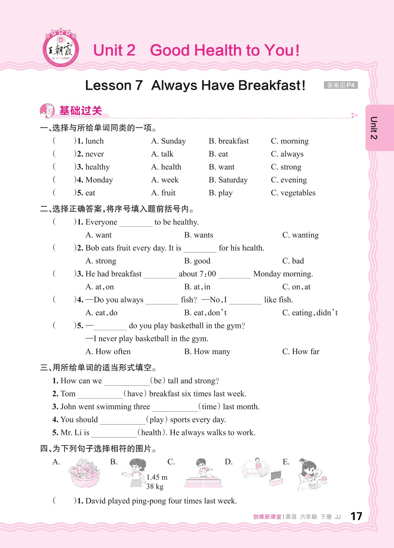2024春下册六年级英语冀教版 Unit 2—Lesson 7 Always Have Breakfast!