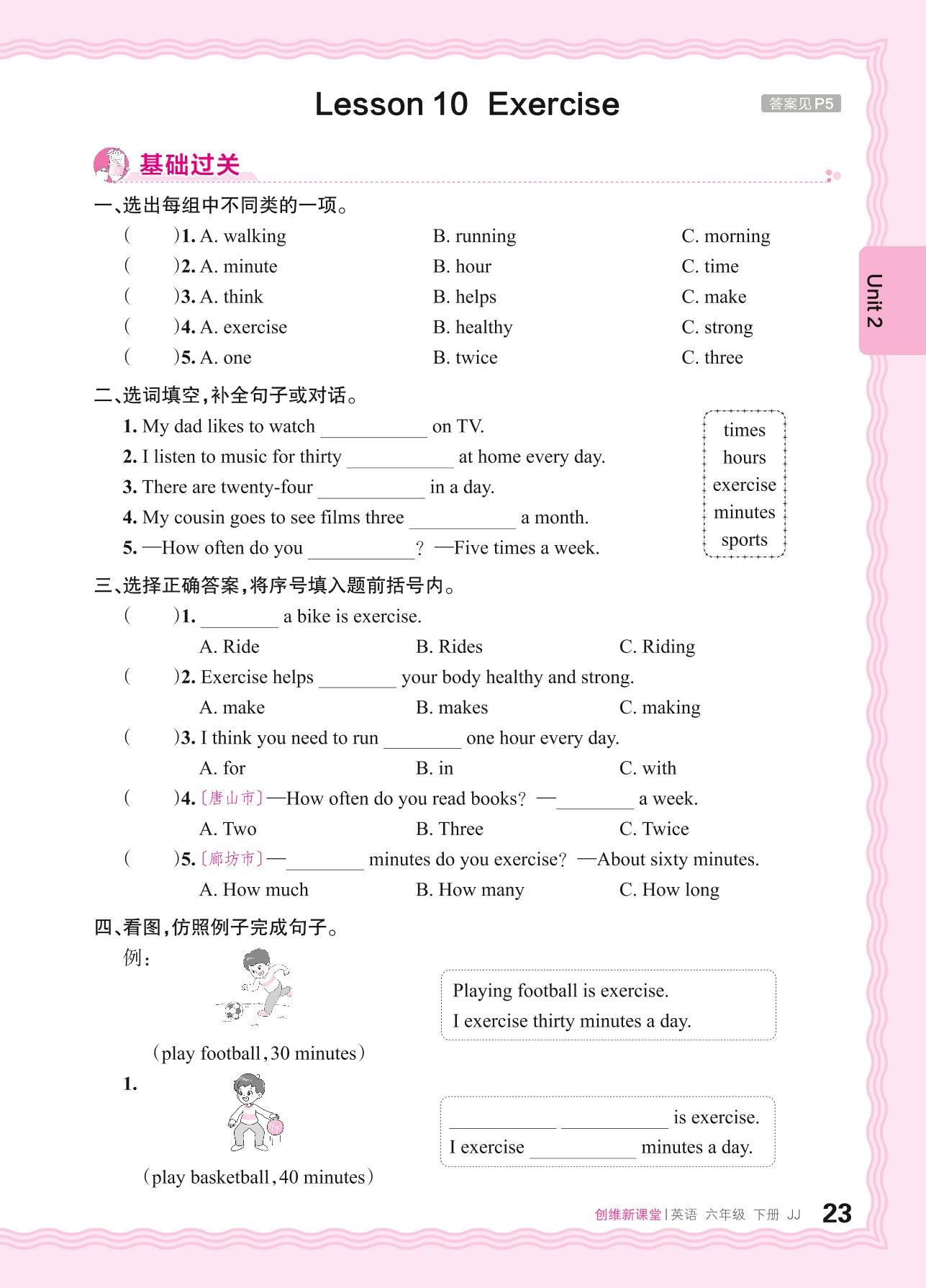 2024春下册六年级英语冀教版 Unit 2—Lesson 10 Exercise