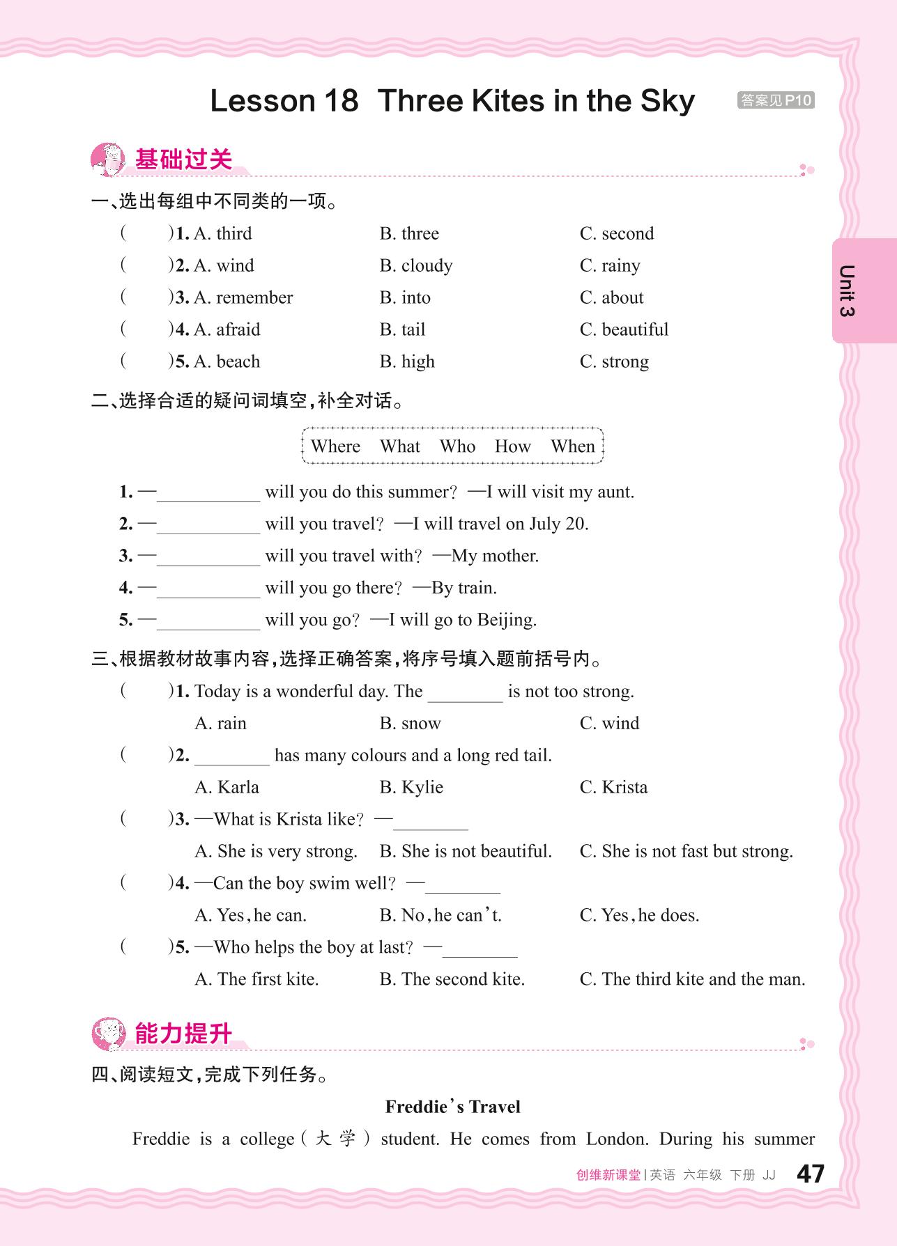 2024春下册六年级英语冀教版 Unit 3—Lesson 18 Three Kites in the Sky