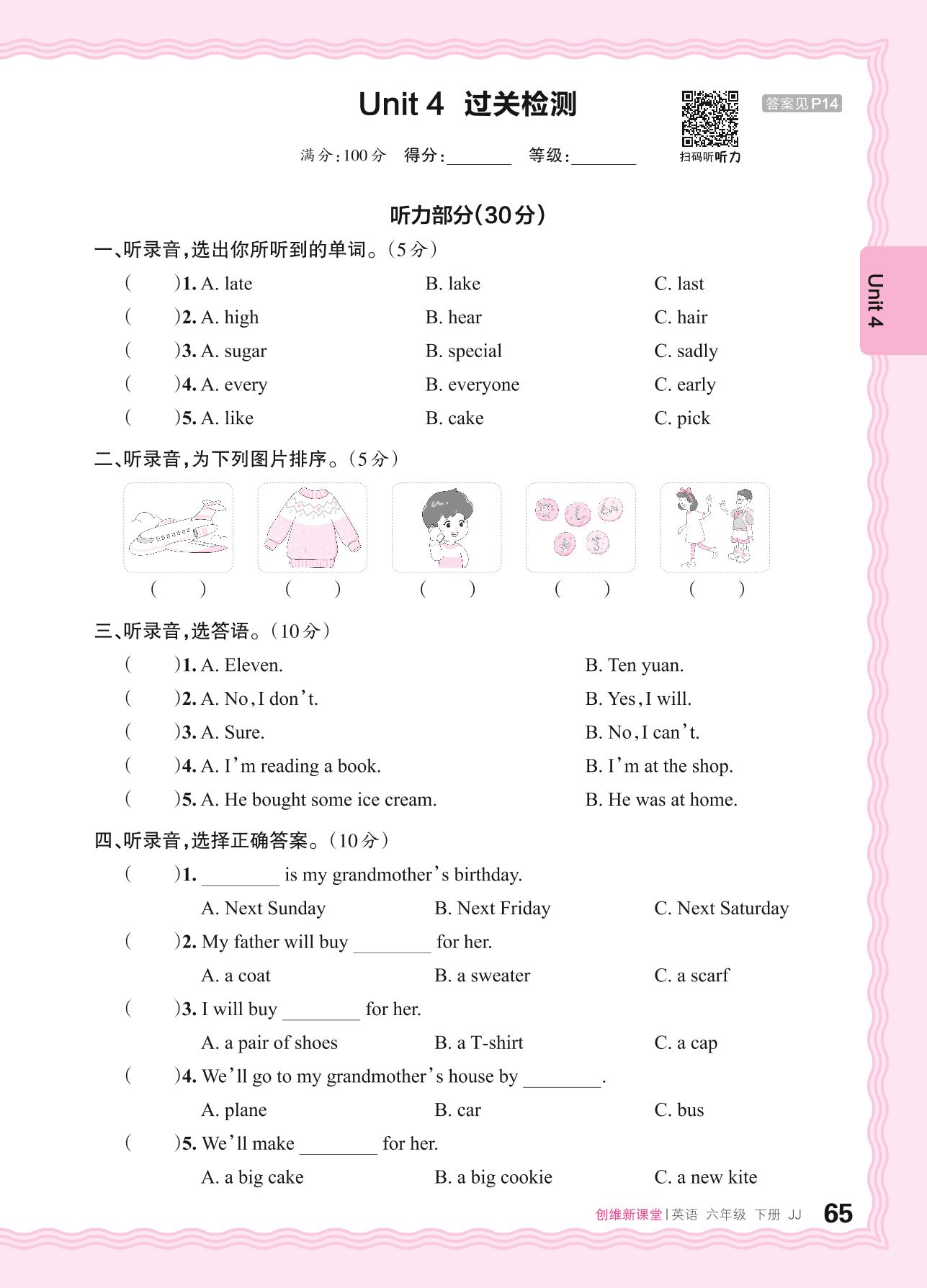 2024春下册六年级英语冀教版 Unit 4 过关检测