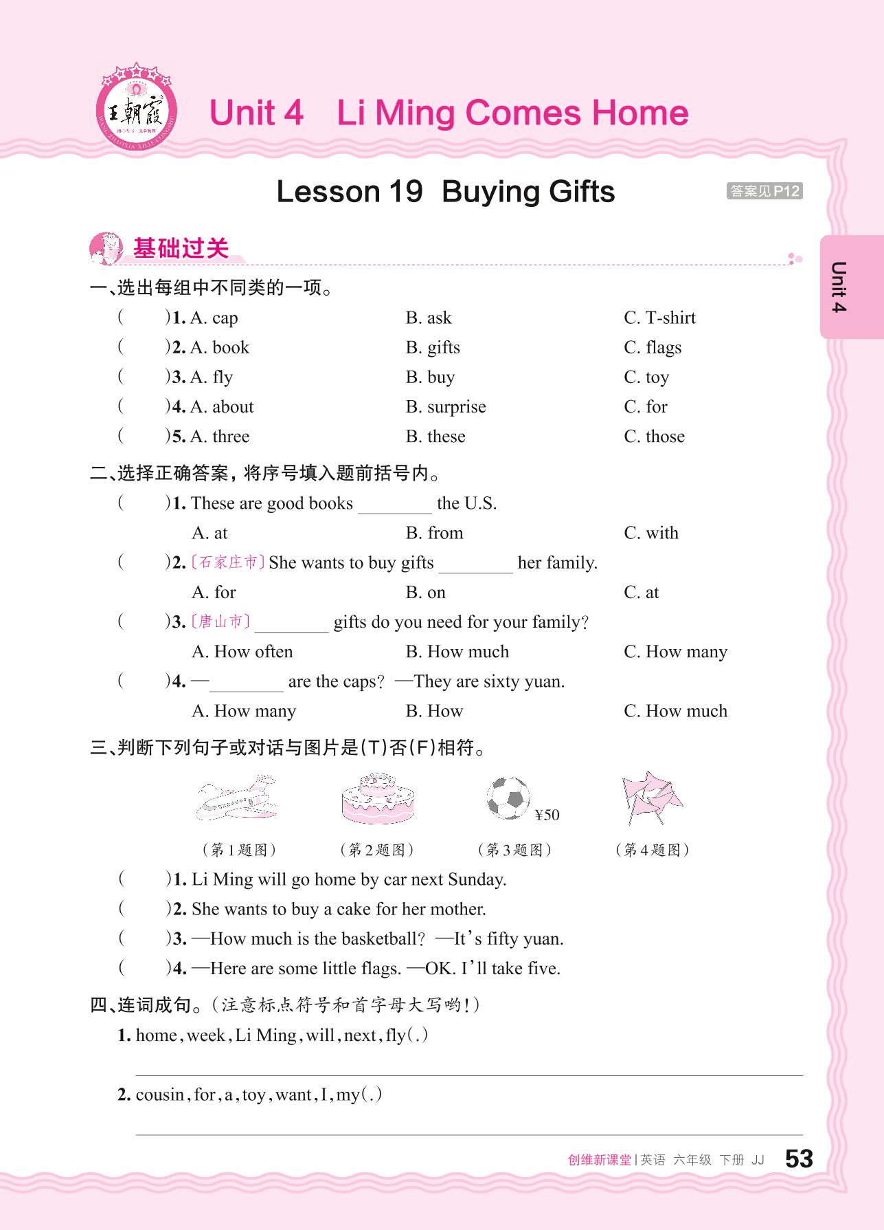 2024春下册六年级英语冀教版 Unit 4—Lesson 19 Buying Gifts