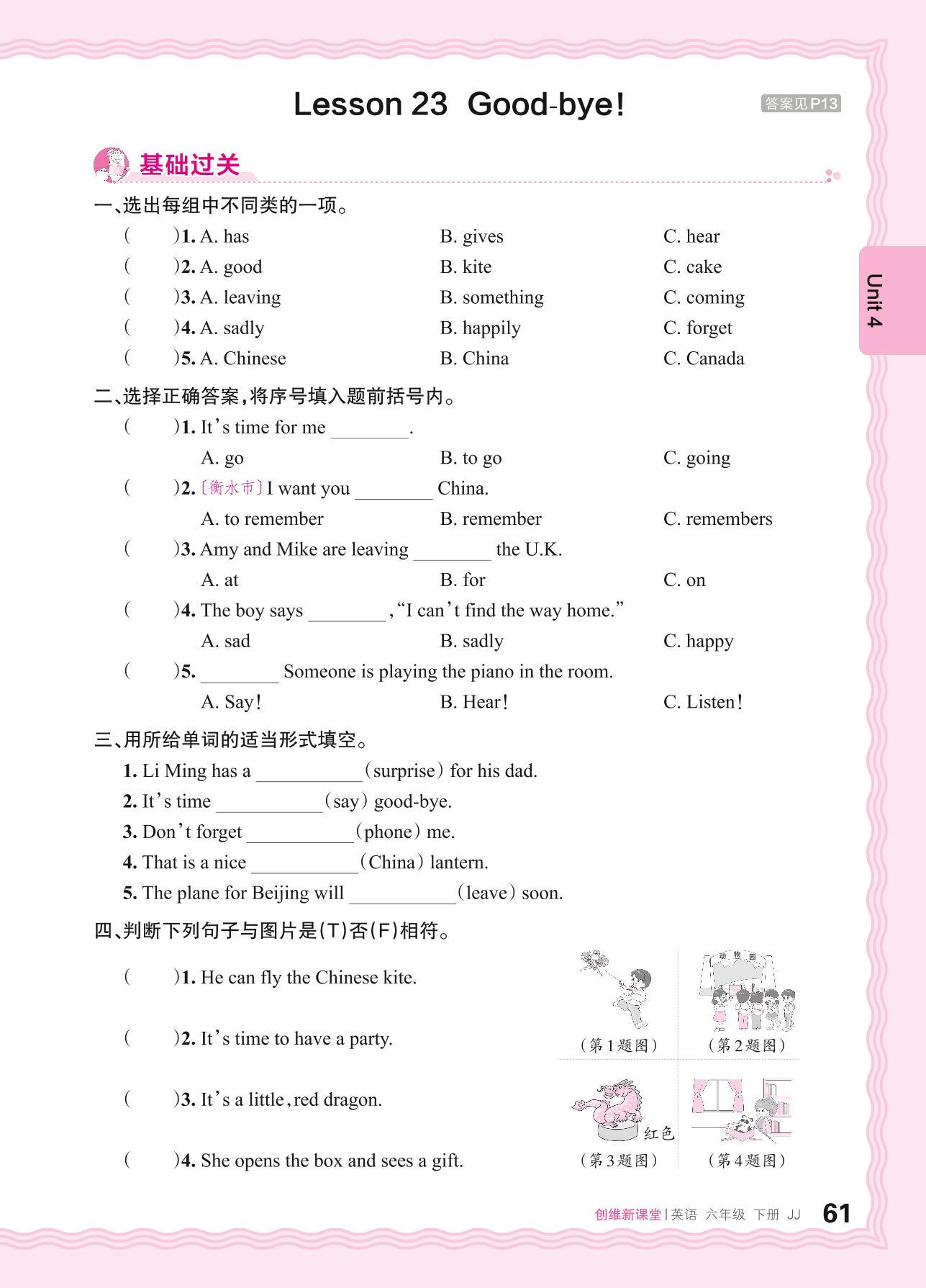 2024春下册六年级英语冀教版 Unit 4—Lesson 23 Good-bye!
