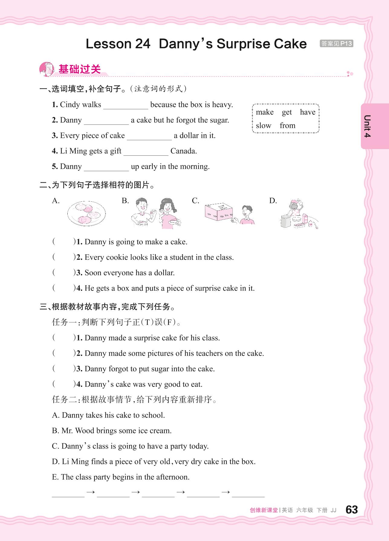 2024春下册六年级英语冀教版 Unit 4—Lesson 24 Danny's Surprise Cake