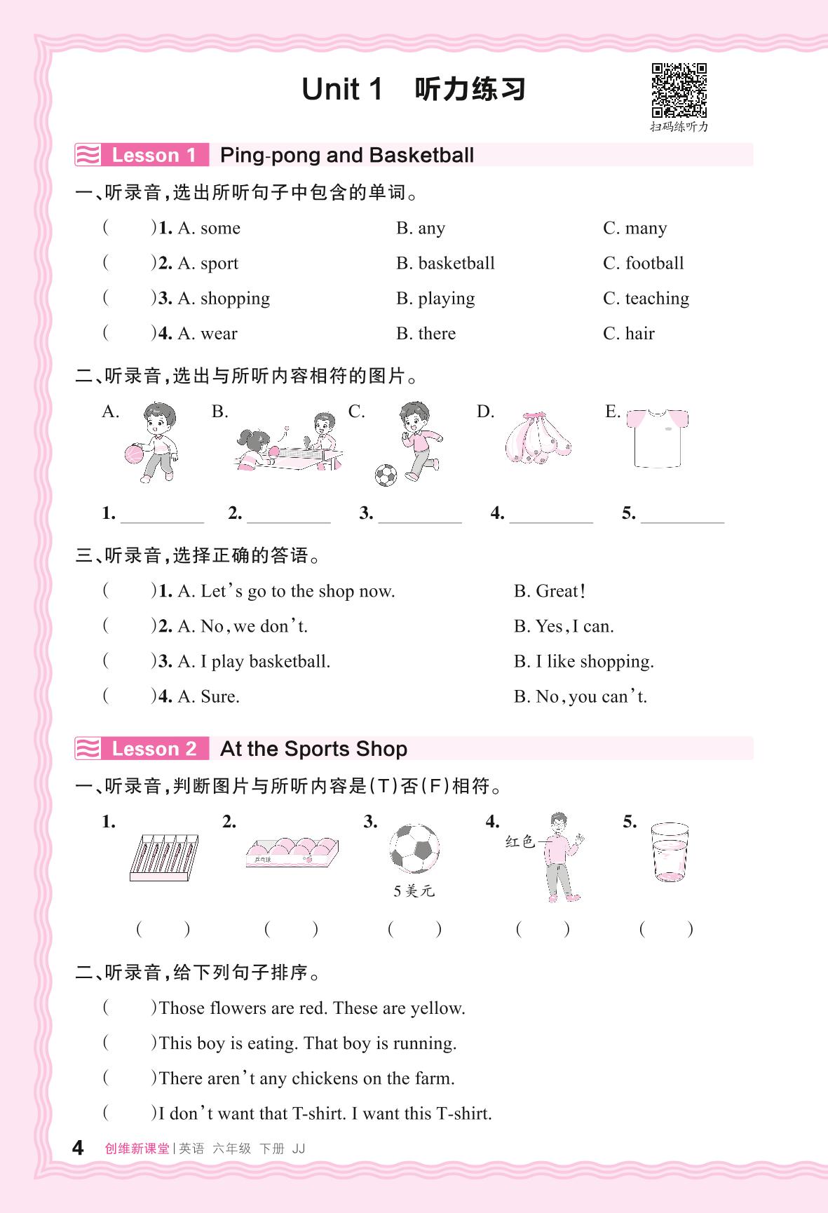 2024春下册六年级英语冀教版 Unit 1 听力练习