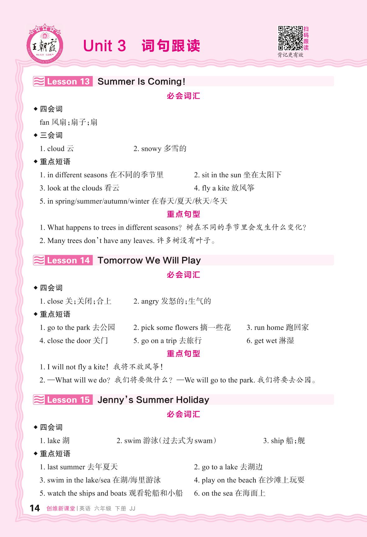 2024春下册六年级英语冀教版 Unit 3 词句跟读