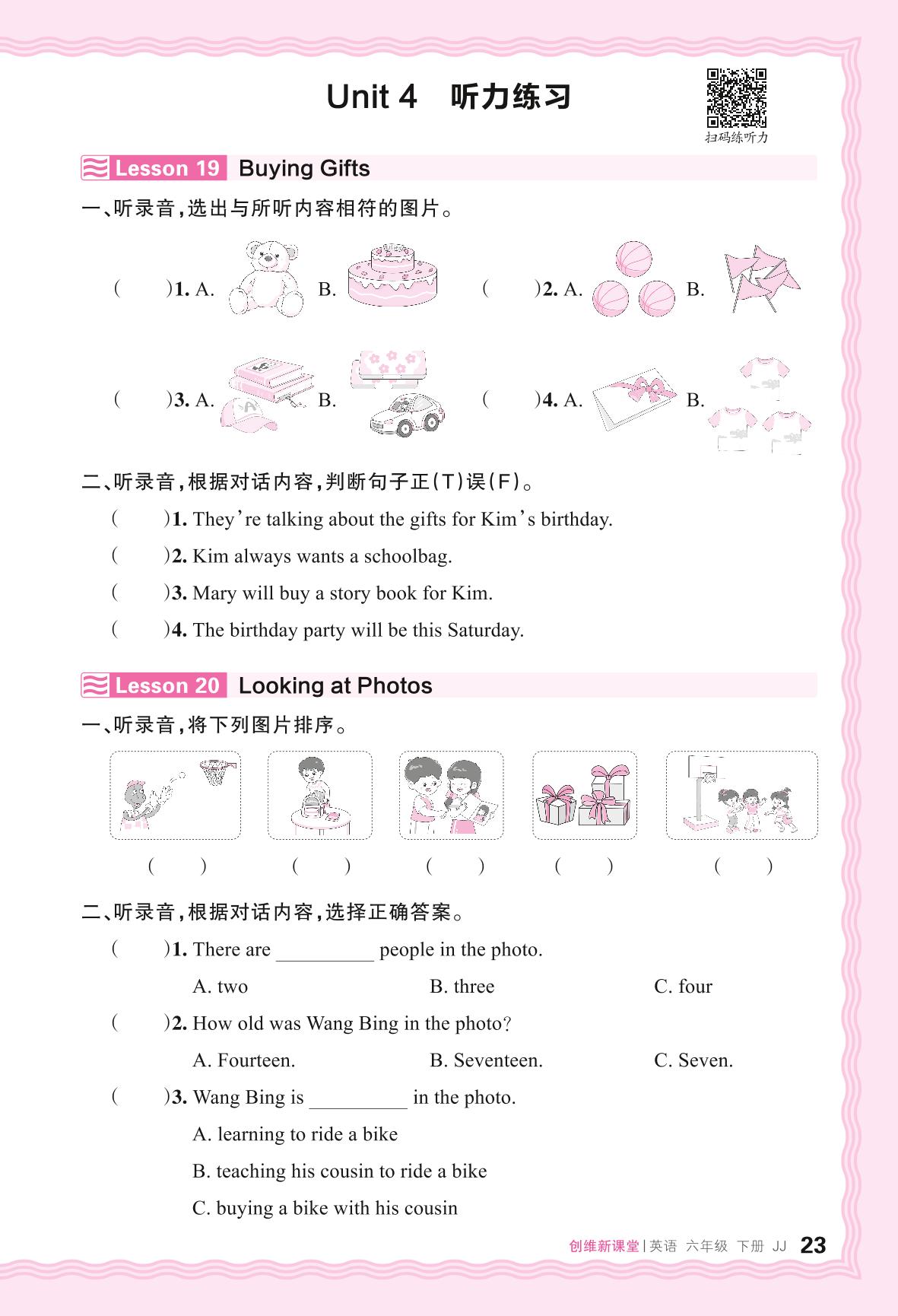 2024春下册六年级英语冀教版 Unit 4 听力练习
