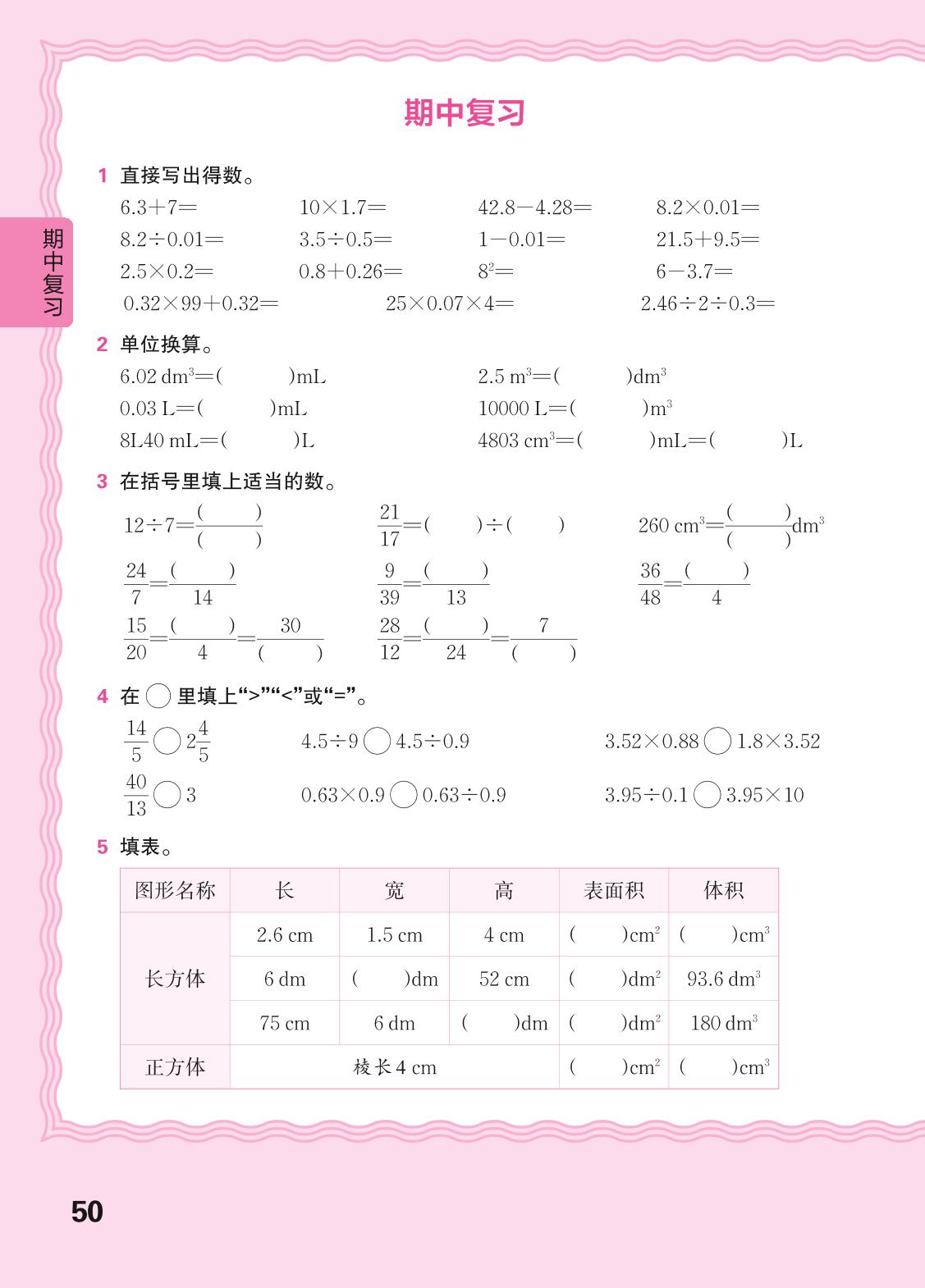 2024春下册五年级数学人教版 期中复习(计算专练)