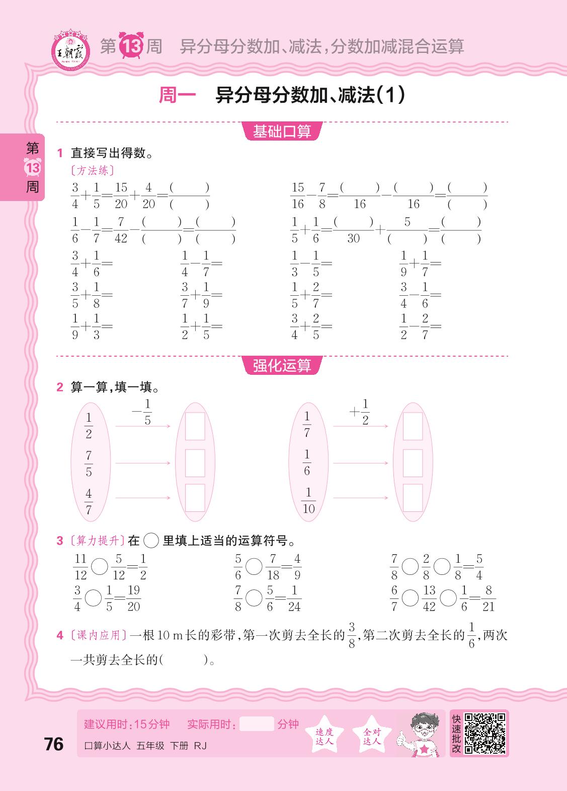 2024春下册五年级数学人教版 口算计算专练 第13周