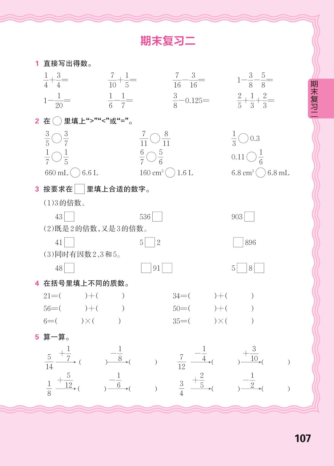 2024春下册五年级数学人教版 期末复习二(计算专练)