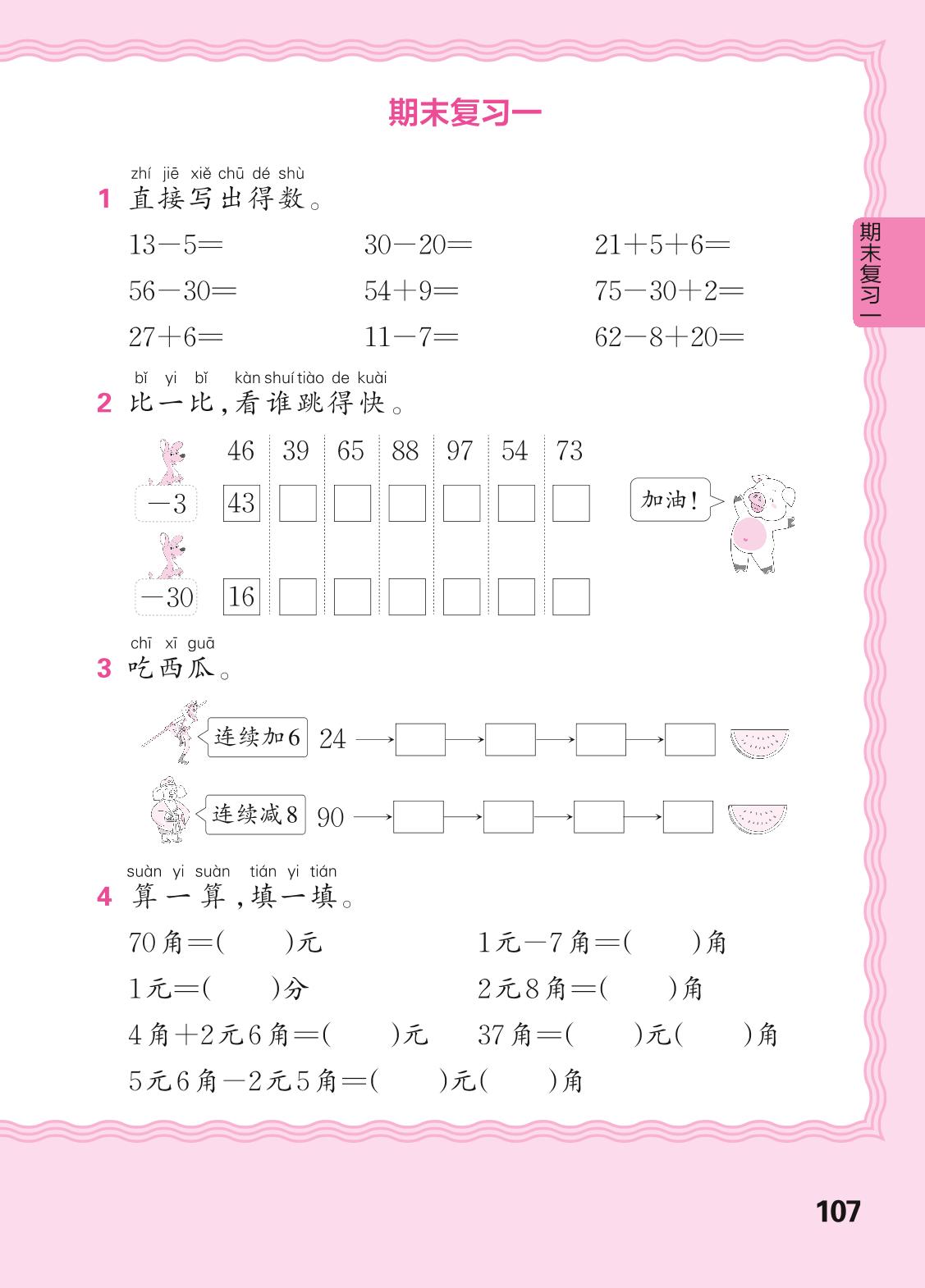 2024春下册一年级数学人教版 期末复习一(计算专练)