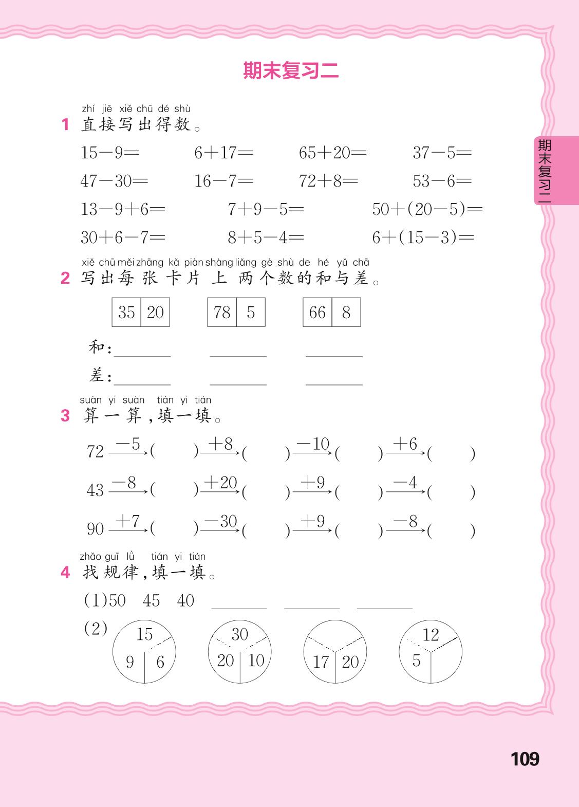 2024春下册一年级数学人教版 期末复习二(计算专练)