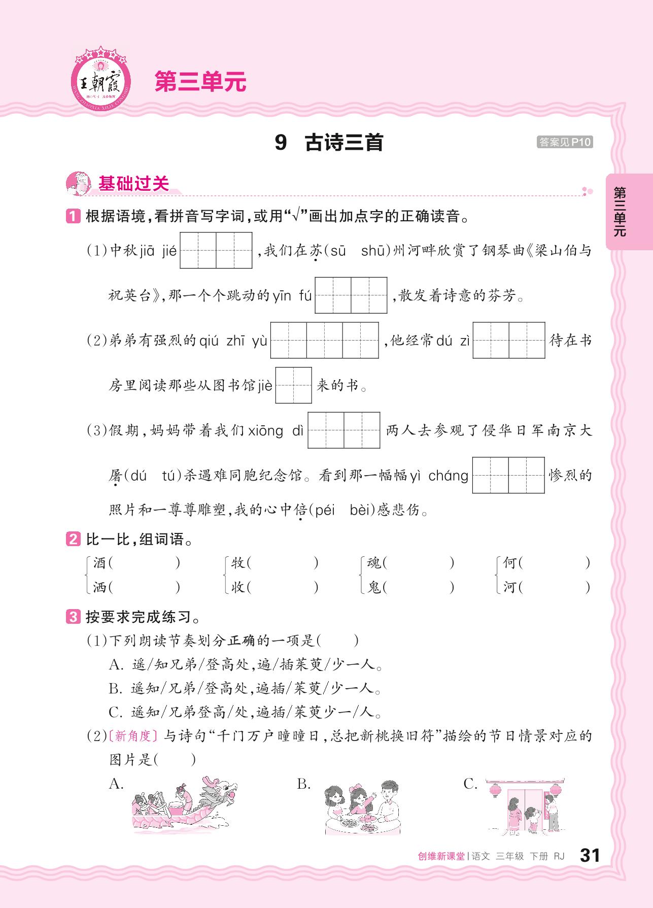 2024春下册三年级语文人教版 第三单元 中华优秀传统文化——9. 古诗三首_R240119100610678