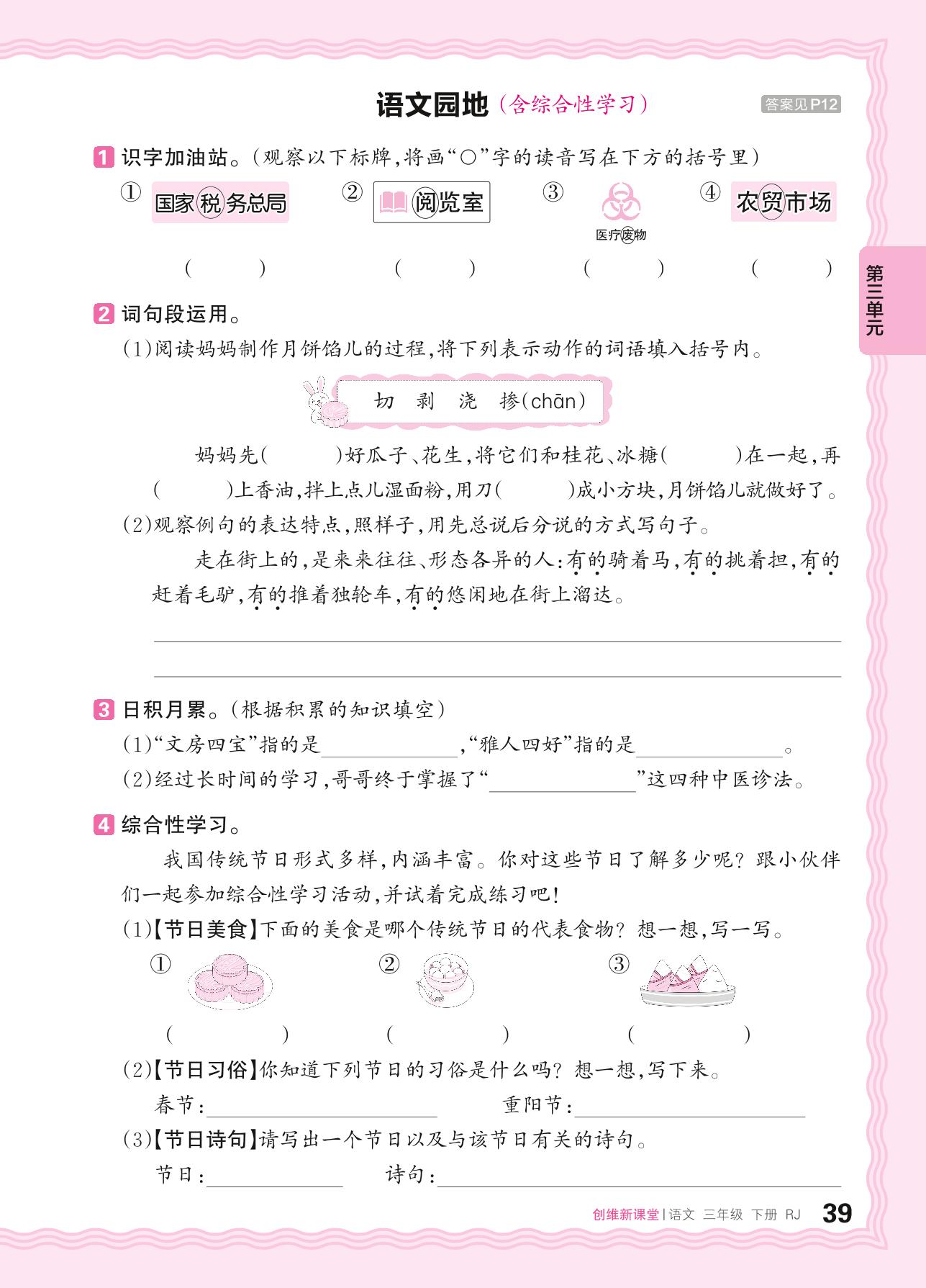 2024春下册三年级语文人教版 第三单元 中华优秀传统文化——语文园地(含综合性学习)_R240119100612710