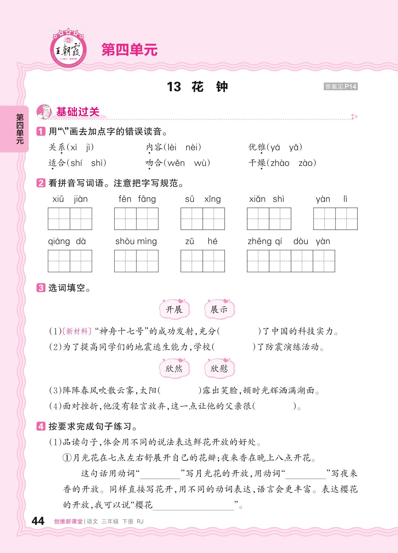 2024春下册三年级语文人教版 第四单元 观察与发现——13. 花钟_R240119100612229