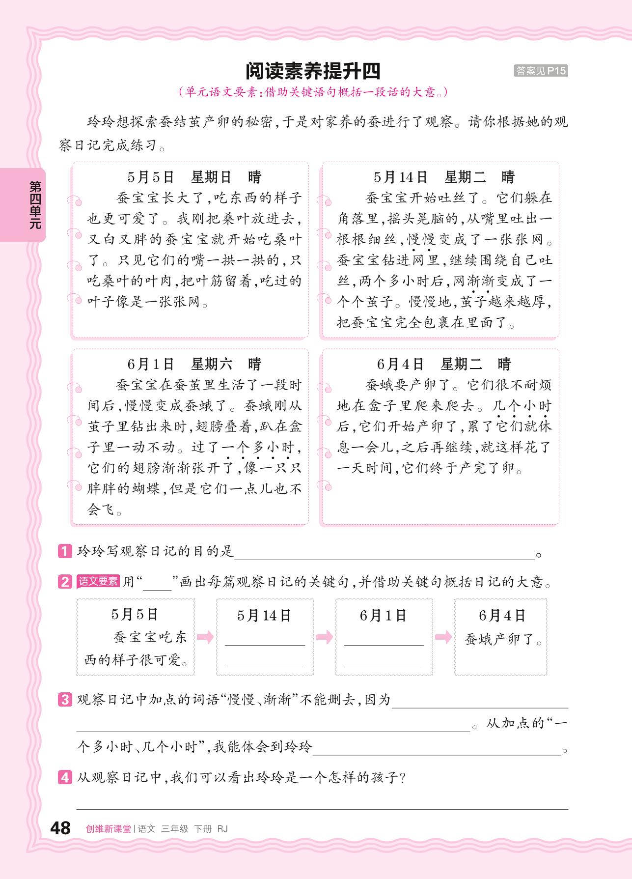 2024春下册三年级语文人教版 第四单元 观察与发现——阅读素养提升四
