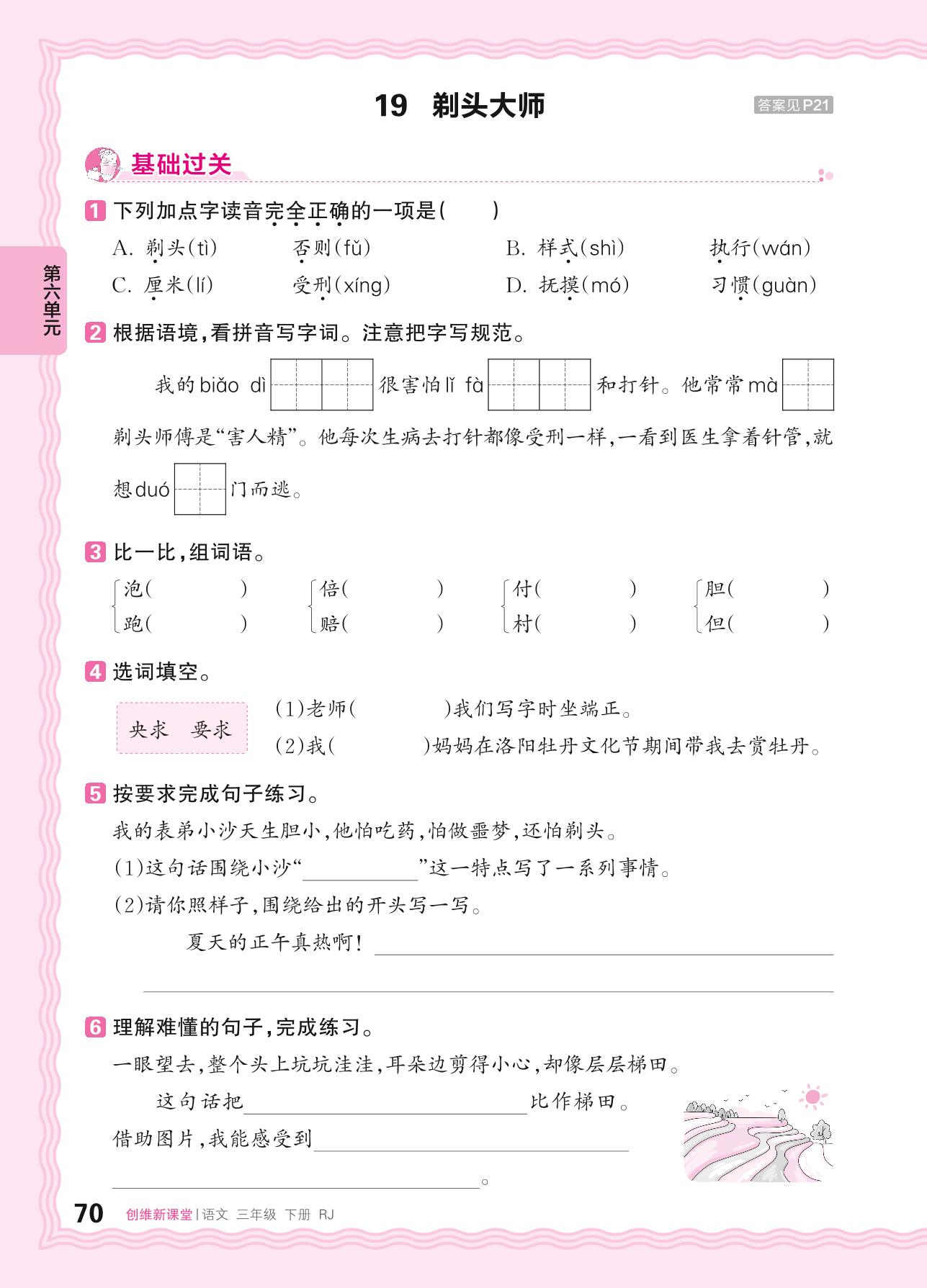 2024春下册三年级语文人教版 第六单元 多彩童年——19. 剃头大师_R240119100618801