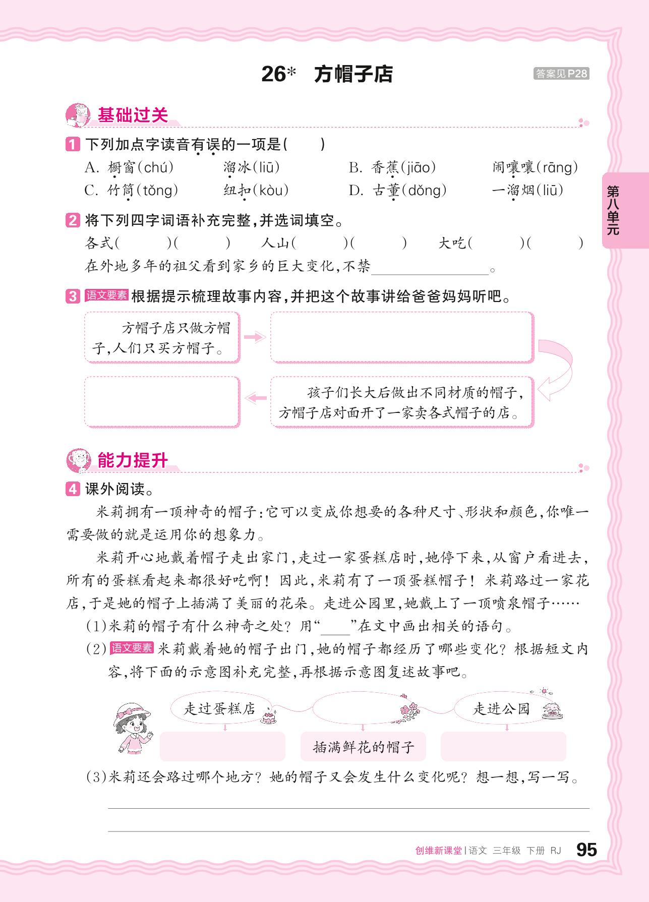 2024春下册三年级语文人教版 第八单元 有趣的故事——26. 方帽子店_R240119100624708