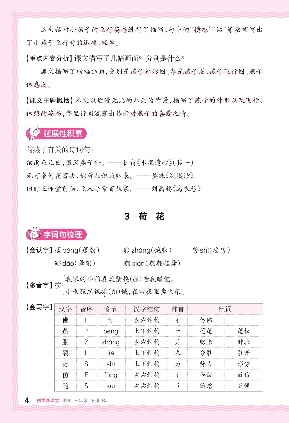 2024春下册三年级语文人教版 助学手册 第一单元——3. 荷花