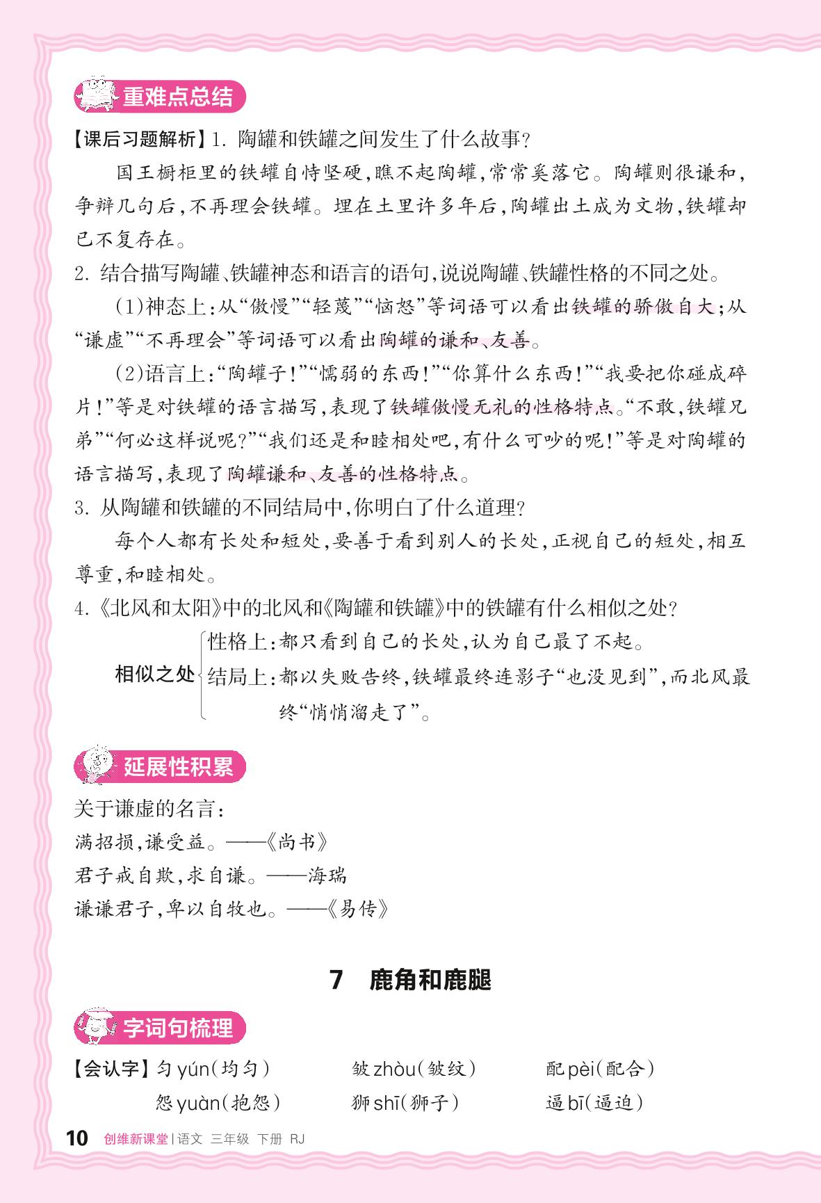 2024春下册三年级语文人教版 助学手册 第二单元——7. 鹿角和鹿腿