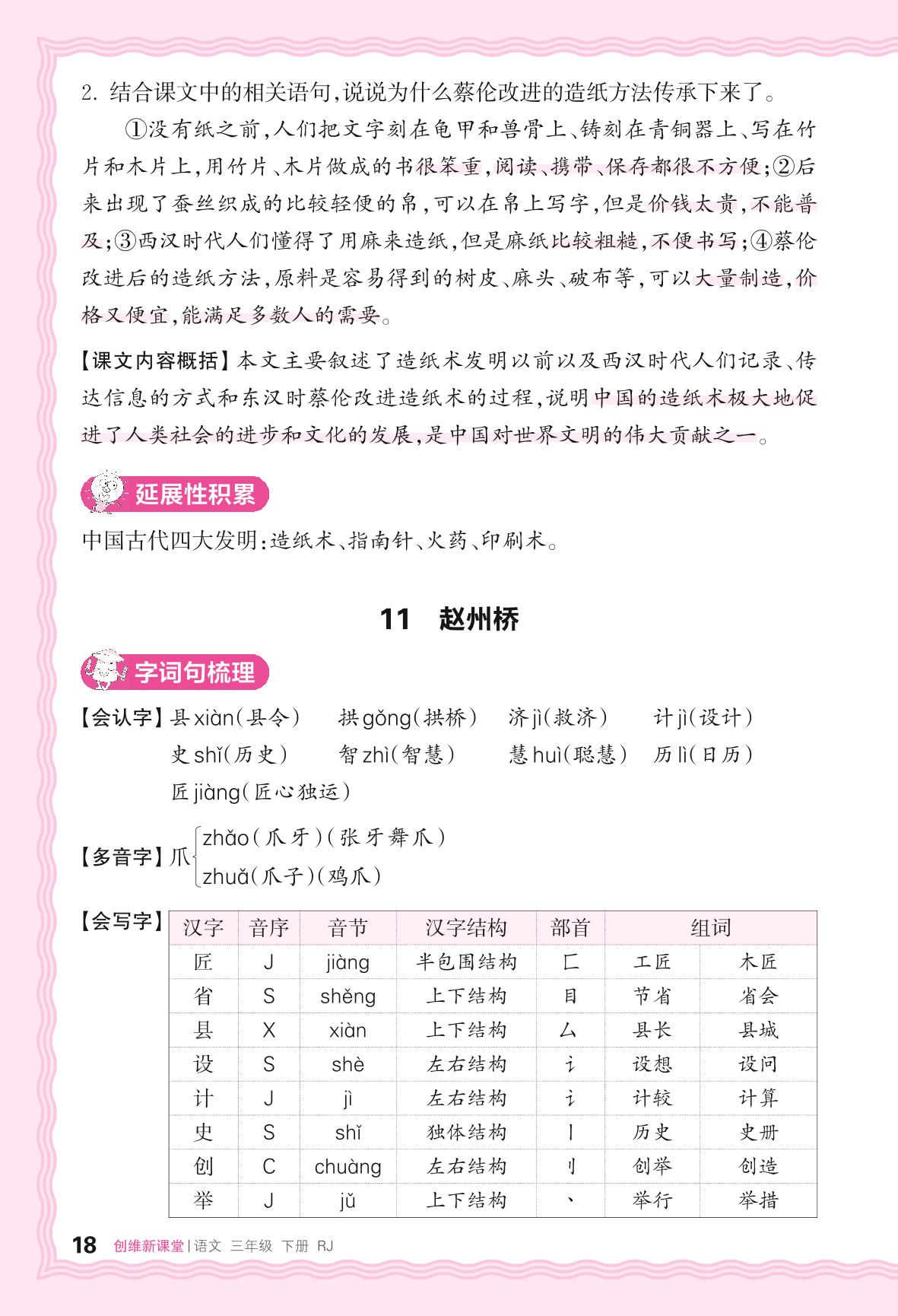 2024春下册三年级语文人教版 助学手册 第三单元——11. 赵州桥